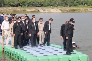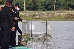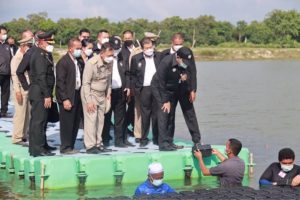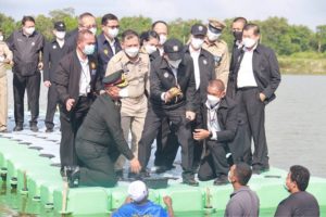 ด้าน พลเรือตรี สมเกียรติ ผลประยูร เลขาธิการศูนย์อำนวยการบริหารจังหวัดชายแดนภาคใต้ ได้กล่าวรายงานว่า “พื้นที่จังหวัดชายแดนภาคใต้มีต้นทุนทางธรรมชาติที่มีความอุดมสมบูรณ์ ศูนย์อำนวยการบริหารจังหวัดชายแดนภาคใต้ ได้ใช้ความสมบูรณ์ของทรัพยากรธรรมชาติ รวมทั้งป่าชายเลนที่มีความเสื่อมโทรมนำมาฟื้นฟูสู่การจัดโครงการนำร่อง โดยการฟื้นฟูชายฝั่ง และส่งเสริมการเลี้ยงปูทะเลจำนวนทั้งสิ้น 34 ชุมชน สำหรับในพื้นที่บางปู อำเภอยะหริ่งมีการเริ่มต้น ร่วมกับเกษตรกรกว่า 1,500 คน นำร่องในพื้นที่ โดยปล่อยลูกปูประมาณ 700,000 ตัว มีอัตรารอดประมาณร้อยละ 70 หรือ 500,000 ตัว ในช่วงเวลา 5 เดือนที่ผ่านมา มีผลผลิตมูลค่าประมาณ 50 ล้านบาท ซึ่งจุดที่ยืนอยู่ในขณะนี้เป็นบ่อกุ้งร้างของพี่น้องประชาชนในพื้นที่ สามารถปล่อยได้ประมาณ 60,000 ตัว แต่เกษตรกรปล่อยไว้ประมาณ 40,000 กว่า มูลค่ากว่า 5.8 ล้านบาท พื้นที่นี้ถือเป็นพื้นที่นำร่องซึ่งจะเชื่อมโยงไปสู่ภาคส่วนอื่นๆ ถือเป็นห่วงโซ่ด้านการท่องเที่ยว ซึ่งจังหวัดปัตตานีมีชุมชนท่องเที่ยว 17 แห่ง การที่ให้พื้นที่แห่งนี้เป็นศูนย์กลางของเมืองปูทะเลโลก จะเป็นพื้นที่พัฒนาที่สร้างรายได้การชุมชน และฟื้นฟูธรรมชาติให้เกิดความสมบูรณ์มากยิ่งขึ้น”