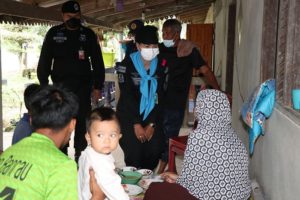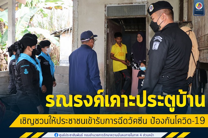 ที่ ตำบลสุวารี อำเภอรือเสาะ จังหวัดนราธิวาส ร้อยโท สราวุธ ประแจ ผู้ช่วยนายทหารฝ่ายกิจการพลเรือน หน่วยเฉพาะกิจกรมทหารพรานที่ 46 ร่วมกับปลัดอำเภอ,เจ้าหน้าที่โรงพยาบาลส่งเสริมสุขภาพตำบลรือเสาะ,อาสาสมัครสาธารณสุขประจำหมู่บ้าน (อสม.),ชุดปฏิบัติการกิจการพลเรือนกองร้อยทหารพรานที่ 4614, ชุดปฏิบัติการกิจการพลเรือนหญิง ผู้นำท้องที่ และผู้นำท้องถิ่น ร่วมเดินรณรงค์เคาะประตูบ้าน เพื่อเชิญชวนให้ประชาชนในพื้นที่ ทั้ง 8 หมู่บ้าน ออกมาเข้ารับการฉีดวัคซีนเพื่อเป็นการป้องกันตัวเอง ป้องกันคนในครอบครัว ป้องกันชุมชน และป้องกันประเทศชาติ และลดความเสี่ยงการแพร่ระบาดของโรคติดเชื้อไวรัสโคโรนา (COVID-19) ในจุดต่างๆ ในพื้นที่ ที่เปิดให้บริการ เพื่อให้ได้ยอดเกิน 70% ตามที่ศูนย์บริหารสถานการณ์แพร่ระบาดของโรคติดเชื้อไวรัสโคโรนา 2019 (COVID-19) กำหนดอย่างเคร่งครัด