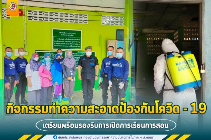 ทั้งนี้ เจ้าหน้าที่ทหารพรานนาวิกโยธิน ได้การทำความสะอาดบริเวณอาคารและโดยรอบอาคารเรียน ห้องเรียน โรงอาหาร โต๊ะ เก้าอี้ รวมถึงพื้นผิวสัมผัสต่างๆ เพื่อป้องกันการแพร่ระบาดของเชื้อไวรัสโควิด-19 และเป็นการสร้างความมั่นใจให้กับครู นักเรียน และผู้ปกครอง พร้อมดำเนินการฉีดพ่นฆ่าเชื้อ เพื่อพัฒนา ปรับภูมิทัศน์ ให้เป็นสถานที่ปลอดเชื้อ ลดการสะสมของเชื้อโรค เพื่อให้เป็นสถานที่ปลอดภัยสำหรับนักเรียนที่เปิดเรียน เป็นมาตราการป้องกันการแพร่ระบาดของเชื้อไวรัสโควิด-19