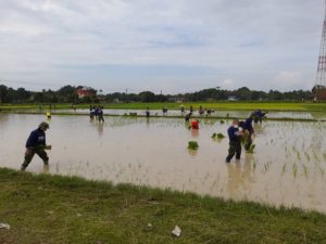 กองร้อยปืนเล็กที่ 2 หน่วยเฉพาะกิจนาวิกโยธินกองทัพเรือที่ 33 ร่วมกับ ครู, ผู้ปกครอง โรงเรียนบ้านทำเนียบ ร่วมกันนำต้นกล้าปักดำนาปลูกข้าวบนพื้นที่แปลงนาสาธิต โรงเรียนบ้านทำเนียบ หมูที่ 6 ตำบลลำภู อำเภอเมือง จังหวัดนราธิวาส ตามโครงการ “ทำเนียบ ทำนา” ซึ่งจัดขึ้นเพื่อสืบสานประเพณีอันดีงามนั่นคือการลงแขกดำนาปักต้นกล้า พลิกฟื้นวิถีชีวิตชาวนาแบบดั้งเดิม ซึ่งการลงแขกดำนาปักต้นกล้าครั้งนี้ทำให้เกิดความร่วมมือของทุกคนในชุมชน สร้างความรัก ความสามัคคี ซึ่งถือเป็นการสร้างความสุขให้กับประชาชน โดยเริ่มตั้งแต่การเตรียมดิน ตกกล้า ถอนกล้า และปักดำกล้า ซึ่งในยุคนี้คงจะหาดูได้ยาก