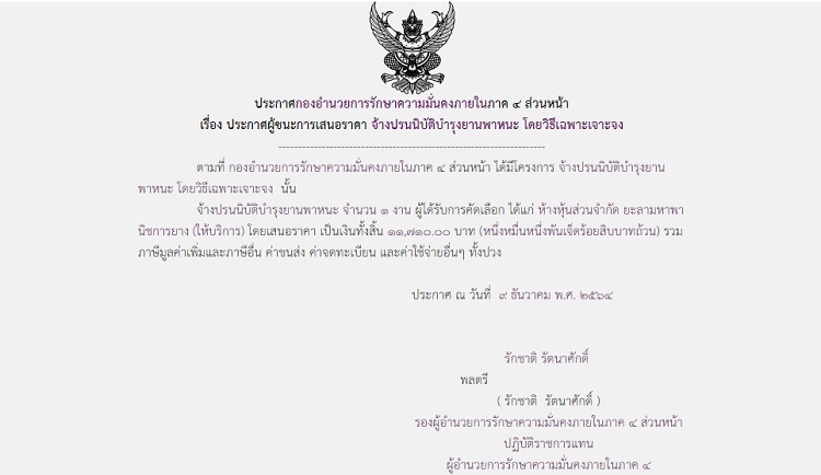 จัดซื้อ จัดจ้างประกาศผู้ชนะการเสนอราคา ประกาศผู้ชนะการเสนอราคา จ้างปรนนิบัติบำรุงยานพาหนะ โดยวิธีเฉพาะเจาะจง (11,710 บาท) December 17, 2021 546 Share Facebook Twitter Google+ Telegram LINE