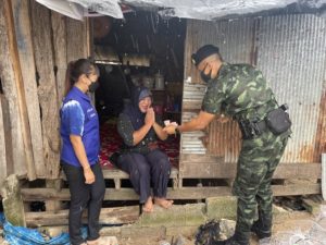 เมื่อวันที่ 18 ธันวาคม 2564 ณ บริเวณบ้านตลาดแขก ตำบลปากบาง อำเภอเทพา จังหวัดสงขลา พันโทเกรียงไกร ดำรัสการ ผู้บังคับหน่วยเฉพาะกิจสงขลา 40 ร่วมกับศูนย์ปฏิบัติการอำเภอเทพา ลงพื้นที่เข้าพบปะ เยี่ยมเยียนพี่น้องประชาชนกลุ่มเปราะบางที่ได้รับความเดือดร้อนจากพายุฝนในพื้นที่ และรับผลกระทบจากการแพร่ระบาดของเชื้อไวรัส covid-19 ทำให้ขาดรายได้เลี้ยงดูครอบครัวจำนวน 2 ครัวเรือน