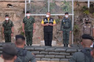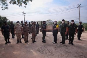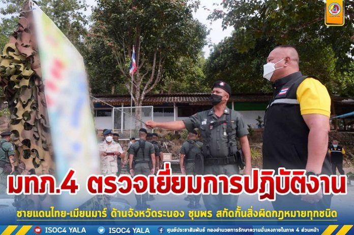 พลโทเกรียงไกร ศรีรักษ์ แม่ทัพภาคที่ 4 กล่าวว่า “วันนี้มาตรวจเยี่ยมการปฏิบัติงานตามแนวชายแดนไทย-เมียนมาร์ ด้านจังหวัดชุมพร และจังระนอง เน้นย้ำการปฏิบัติเรื่องการดูแลชายแดน ทั้งการลักลอบการเข้าเมืองโดยผิดกฎหมาย เรื่องการเคลื่อนย้ายยาเสพติด เรื่องการลักลอบนำสินค้าต้องห้ามเข้ามาในราชอาณาจักร โดยเฉพาะสินค้าด้านการเกษตร ซึ่งจะส่งผลกระทบต่อพี่น้องชาวสวน/เกษตรกรในประเทศ ซึ่งในขณะนี้ราคาที่รัฐบาลได้ดำเนินการพี่น้องประชาชนก็สามารถอยู่ได้ การลักลอบสิ่งเหล่านี้นำมาจากประเทศเพื่อนบ้านก็จะส่งผลกระทบต่อราคาของพืชผลเกษตรของพี่น้องประชาชน กำชับการปฏิบัติให้ประสานการทำงานกับส่วนราชการที่เกี่ยวข้อง ตรวจตราแนวชายแดนต้องดำเนินการเร่งรัดจับกุมทุกกรณี อย่าเลือกปฏิบัติ ให้ทุกคนได้มีความมุ่งมั่นในการทำหน้าที่ ผู้ที่กระทำความผิดมักแอบอ้างว่าได้พูดคุยกับผู้บังคับบัญชาแล้ว ทำให้บางครั้งผู้ปฏิบัติก็มีความหวั่นไหวเช่นกัน ขอยืนยันว่าในระดับผู้บังคับบัญชาไม่มีนโยบายการกระทำความผิดเหล่านี้ หากใครแอบอ้างให้เจ้าหน้าที่ดำเนินการจับกุมได้ ให้เพิ่มข้อหาในการแอบอ้างไปด้วย อยากให้ทุกคนได้ทำหน้าที่อย่างตรงไปตรงมา วันนี้มาให้กำลังใจ และให้ความมั่นใจผู้ใต้บังคับบัญชาในการทำงาน ในส่วนเรื่องการลักลอบเข้ามาของแรงงานต่างด้าว ที่ผ่านมาได้เน้นย้ำมาตลอดเวลา ถึงการควบคุมการลักลอบเข้ามาของแรงงานต่างด้าวที่เข้ามาอย่างผิดกฎหมาย โดยเฉพาะในปัจจุบันการแพร่ระบาดของเชื้อไวรัส covid-19 ซึ่งทุกคนจะต้องผ่านกระบวนการการคัดกรอง การตรวจหาเชื้อไวรัส covid-19 เป็นสิ่งที่น่าเป็นห่วงมาก เพราะฉะนั้นต้องมีความเข้มงวดของการสกัดกั้นการลักลอบเข้ามายังผิดกฎหมาย ตามแนวชายแดนไทย-เมียนมาร์ ต้องมีความเข้มข้นและประสานการปฏิบัติกับผู้นำท้องที่ ผู้นำท้องถิ่น และสร้างความเข้าใจกับพี่น้องประชาชนในพื้นที่ถึงผลเสียหายที่จะได้รับ ผลกระทบที่จะได้รับในเรื่องของการแพร่ระบาดของเชื้อไวรัส covid-19”