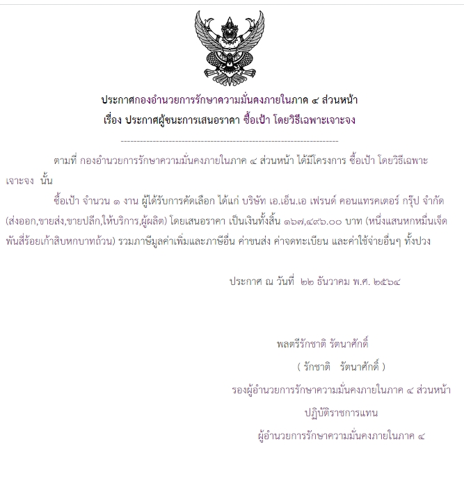 จัดซื้อ จัดจ้างประกาศผู้ชนะการเสนอราคา ประกาศผู้ชนะการเสนอราคา ซื้อเป้า โดยวิธีเฉพาะเจาะจง December 23, 2021 689 Share Facebook Twitter Google+ Telegram LINE