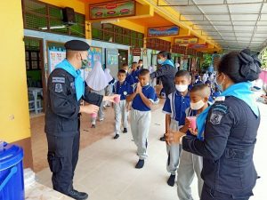 นอกจากนี้ยังสาธิตวิธีการล้างมือ 7 ขั้นตอน ด้วยเจลล์แอลกอฮอล์ก่อนเข้าห้องเรียน เพื่อควบคุมป้องกันการแพร่ระบาดเชื้อไวรัสโคโรน่า (COVID – 19) พร้อมทั้งได้นำขนม และเครื่องดื่ม มาแจกจ่ายให้กับนักเรียนที่เข้าร่วมกิจกรรมอีกด้วย