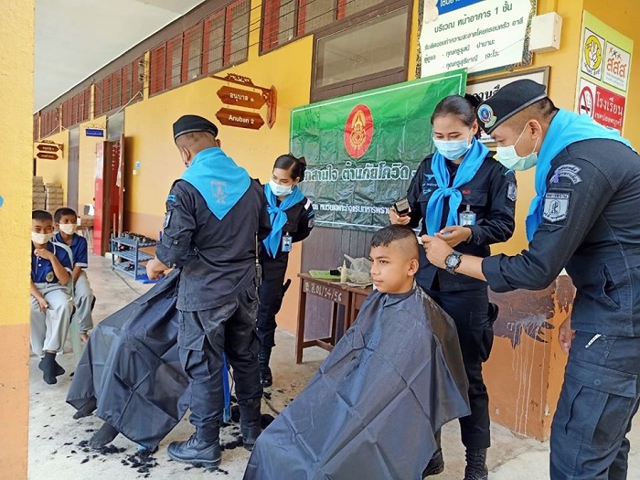 หน่วยเฉพาะกิจกรมทหารพรานที่ 46 ลงพื้นที่โรงเรียนบ้านลาเมาะฮีเล บ้านลาเมาะใน หมูที่ 5 ตำบลรือเสาะออก อำเภอรือเสาะ จังหวัดนราธิวาส เพื่อออกให้บริการให้บริการตัดผมถึงที่บ้าน โดยไม่คิดค่าใช้จ่ายให้กับนักเรียน เพื่อลดภาระค่าใช้จ่ายภายในครัวเรือนของผู้ปกครอง