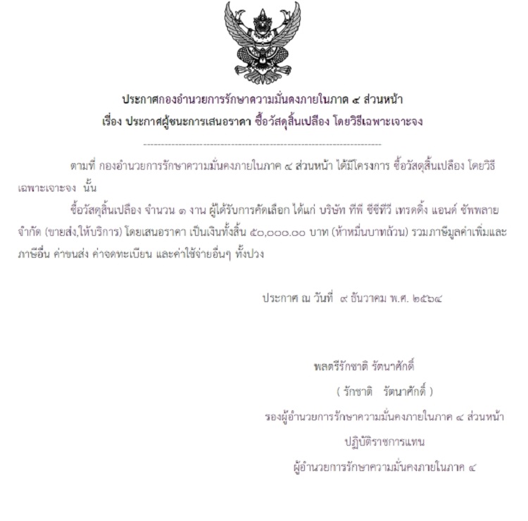 ประกาศผู้ชนะการเสนอราคา ซื้อวัสดุสิ้นเปลือง โดยวิธีเฉพาะเจาะจง (50,000 บาท)