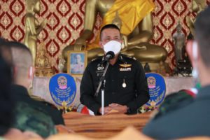 พลตรี ปราโมทย์ พรหมอินทร์ รองผู้อำนวยการรักษาความมั่นคงภายในภาค 4 ส่วนหน้า / ผู้บัญชาการมณฑลทหารบกที่ 41 กล่าวว่า ด้วยความมุ่งมั่นของพวกเราทุกคน ทำให้ได้จัดพิธีทอดผ้าป่าครั้งนี้ขึ้น มีโอกาสให้พี่น้องประชาชนในพื้นที่มาร่วมกันทำบุญ สำหรับยอดเงินในวันนี้ได้ 385,316 บาท ซึ่งขอเรียนเจ้าอาวาสวัดพุทธฤทธิ์วนาราม ว่าอยากให้ถึง 500,000 บาท ซึ่งหลังจากนี้จะนำยอดบริจาคมาสมทบทุนเพิ่มเติมในโอกาสต่อไป เพื่อนำมาใช้ก่อสร้างเตาเผาศพปลอดมลพิษ สำหรับพื้นที่อำเภอสะบ้าย้อย เป็นพื้นที่รับผิดชอบของหน่วยเฉพาะกิจสงขลา วันนี้รองผู้บังคับหน่วยเฉพาะกิจสงขลาได้มาร่วมด้วย หากพี่น้องประชาชนมีสิ่งหนึ่งสิ่งใดที่อยากจะให้ทางกองอำนวยการรักษาความมั่นคงภายในภาค 4 ส่วนหน้า เข้ามาช่วยเหลือ สนับสนุน ดูแล พวกเราก็พร้อมอย่างยิ่ง วันนี้ก็ขอขอบคุณพี่น้องประชาชน และทุกๆ ภาคส่วนที่ได้มาร่วมเป็นเจ้าภาพพิธีทอดผ้าป่าในครั้งนี้ ขอผลบุญที่ทุกท่านได้ร่วมกันทำในวันนี้ เป็นภาวะปัจจัยหนุนเสริม ส่งให้พบแต่สิ่งที่ดีงาม มีสุขภาพร่างกายที่แข็งแรง มีจิตใจที่เข้มแข็ง พร้อมรับในช่วงเทศกาลปีใหม่ที่ใกล้จะมาถึงนี้ต่อไป
