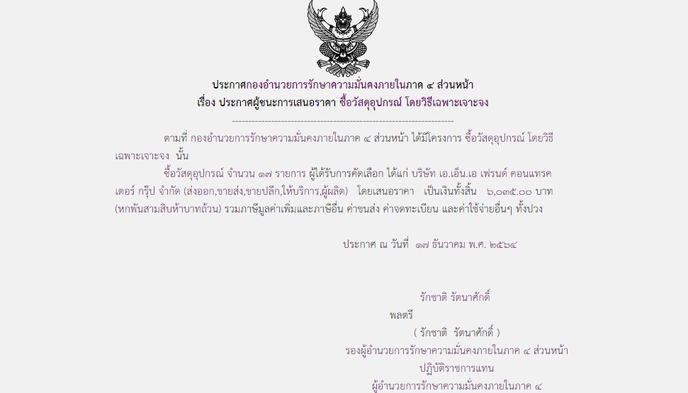 จัดซื้อ จัดจ้างประกาศผู้ชนะการเสนอราคา ประกาศผู้ชนะการเสนอราคา ซื้อวัสดุอุปกรณ์ โดยวิธีเฉพาะเจาะจง December 27, 2021 484 Share Facebook Twitter Google+ Telegram LINE