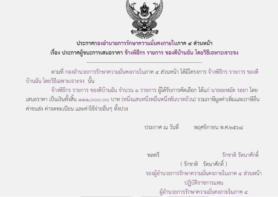 จัดซื้อ จัดจ้างประกาศผู้ชนะการเสนอราคา ประกาศผู้ชนะการเสนอราคา จ้างพิธีกร รายการ ของดีบ้านฉัน โดยวิธีเฉพาะเจาะจง December 28, 2021 503 Share Facebook Twitter Google+ Telegram LINE