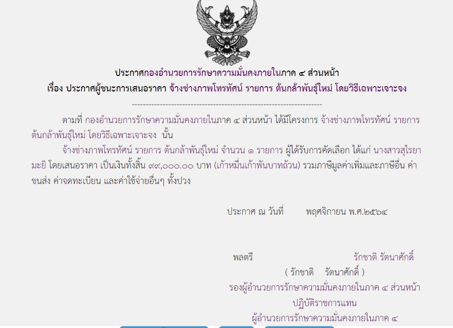 ประกาศผู้ชนะการเสนอราคา จ้างช่างภาพโทรทัศน์ รายการต้นกล้าพันธุ์ใหม่ โดยวิธีเฉพาะเจาะจง