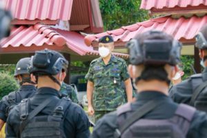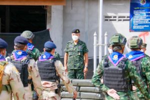 จากนั้นเวลา 16.00 น. รองผู้อำนวยการรักษาความมั่นคงภายในภาค 4 ส่วนหน้า และคณะ เดินทางต่อไปยังด่านศุลกากร อ.ตากใบ จ.นราธิวาส เพื่อลาดตระเวนตามแนวชายแดนไทย-มาเลเซีย โดยได้เดินทางไปตรวจเยี่ยมและให้กำลังใจกำลังพลชุดปฏิบัติการพิทักษ์พื้นที่ 2 โดยร้อยป้องกันชายแดนใต้ที่ 4 ได้บรรยายสรุปผลการดำเนินงานของการตั้งจุดตรวจ จุดสกัดของชุดปฏิบัติการพิทักษ์พื้นที่ 1043 โดยเฉพาะในห้วงเทศกาลปีใหม่ 28 ธันวาคม 2564 ถึง 2 มกราคม 2565 มีการเพิ่มพื้นที่ลาดตระเวรตามลำน้ำโกลกและลำน้ำบางนรา ในการป้องกันสกัดกั้นยับยั้งการลักลอบขนย้าย อาวุธ ยาเสพติด แรงงานต่างด้าว สิ่งผิดกฎหมายต่างๆ และการคัดกรองบุคคล ตลอดจนการป้องกันการแพร่ระบาดของโรคติดเชื้อโควิด -19 อีกทั้งยังป้องกันการกระผิดกฏหมายทุกรูปแบบ เพื่อทำให้พื้นที่แนวชายแดนมีความปลอดภัย และสร้างความมั่นคงให้กับพี่น้องประชาชนอีกด้วย