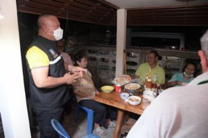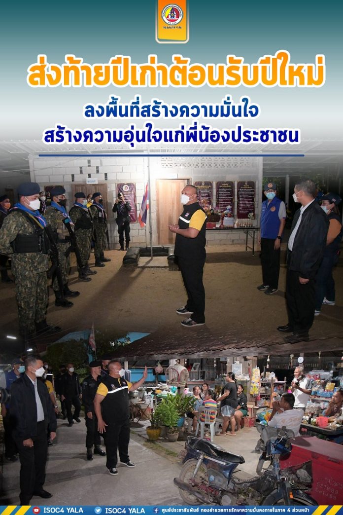 จนเมื่อถึงเวลาค่ำ แม่ทัพภาคที่ 4 เดินทางมายังชุมชนเตราะบอน เยี่ยมเยียนพี่น้องประชาชนในชุมชน ตำบลเตราะบอน อำเภอสายบุรี จังหวัดปัตตานี เดินเท้าสอบถามความเป็นอยู่แต่ละครัวเรือน โดยพบว่าพี่น้องประชาชนได้รู้สึกผ่อนคลายความตึงเครียดจากสถานการณ์ต่าง ๆ ในปีที่ผ่านมา และมีการสังสรรค์กันในครัวเรือนอย่างเรียบง่ายมากกว่า โดยแม่ทัพภาคที่ 4 ได้อวยพรปีใหม่ให้พี่น้องประชาชนในพื้นที่จังหวัดชายแดนใต้ทุกคนมีความสุข อยู่ร่วมกันด้วยความเอื้ออาทร ดำเนินชีวิตด้วยความไม่ประมาท ดูแลรักษาสุขภาพของตนและคนรอบข้างให้ปลอดภัยจากโรคภัยต่างๆ ซึ่งเจ้าหน้าที่ทุกฝ่ายพร้อมดูแลรักษาความปลอดภัยอย่างเข้มแข็งในทุกเทศกาลเพื่อความสุขของพี่น้องประชาชนในพื้นที่ตลอดไป ก่อนเข้าพักค้างแรมพร้อมคณะ ณ วัดปทุมวารี สร้างความอบอุ่นใจให้แก่พี่น้องประชาชนในห้วงเทศกาลปีใหม่ 2565