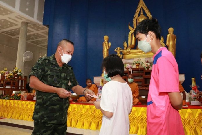 หลังพิธีทำบุญตักบาตร รอง ผอ.รมน.ภาค 4 สน.ได้กล่าวว่า รู้สึกยินดีที่ได้เห็นความเข้มแข็งของพี่น้องประชาชนที่ร่วมกันจากการตรวจเยี่ยมการปฏิบัติหน้าที่และพักค้างแรมเห็นได้ชัดเจนและเชื่อมั่นว่าพี่น้องประชาชนสามารถจะดูแลผืนแผ่นดินเกิดของตนไว้ได้ เนื่องในโอกาสวันขึ้นปีใหม่ปี 2565 ขอให้ทุกท่านประสบแต่ความสุข คิดหวังสิ่งใดสมหวังทุกประการ และได้ บริจาคเงินทำบุญเป็นค่าน้ำค่าไฟให้กับทางวัด พร้อมกันนี้ ได้มอบเงินรางวัลเป็นของขวัญปีใหม่ให้กับ เยาวชนที่มาร่วมทำบุญตักรบาตรกับผู้ปกครองในวันนี้ด้วย
