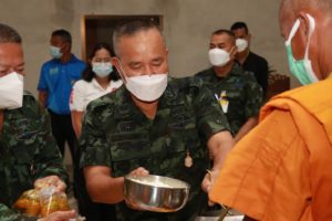 เมื่อวันที่ 1 ม.ค.2565 เวลา 07.00 น. พล.ท.ธิรา แดหวา แม่ทัพน้อยที่ 4/รอง ผอ.รมน.ภาค 4 สน.(1) พร้อมคณะ ร่วมทำบุญตักบาตรกันพุทธศาสนิกชน ในโอกาสวันขึ้นปีใหม่ 2565 ณ วัดโตนด ต.บ้านโหนด อ.สะบ้าย้อย จ.สงขลา โดยมี กำลังพลนายทหาร นายสิบ ชาวไทยพุทธ เข้าร่วมภายใต้มาตรการป้องกันโรคไวรัสโควิด 19 อย่างเคร่งครัด