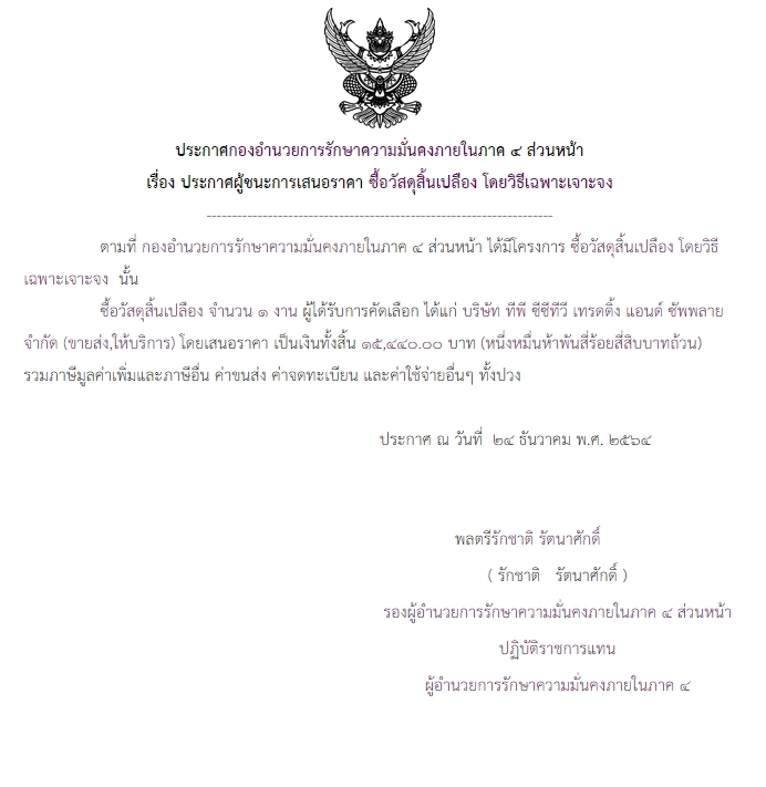 จัดซื้อ จัดจ้างประกาศผู้ชนะการเสนอราคา ประกาศผู้ชนะการเสนอราคา ซื้อวัสดุสิ้นเปลือง โดยวิธีเฉพาะเจาะจง January 6, 2022 506 Share Facebook Twitter Google+ Telegram LINE