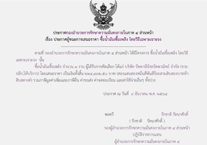 จัดซื้อ จัดจ้างประกาศผู้ชนะการเสนอราคา ประกาศผู้ชนะการเสนอราคา ซื้อน้ำมันเชื้อเพลิง โดยวิธีเฉพาะเจาะจง January 6, 2022 649 Share Facebook Twitter Google+ Telegram LINE