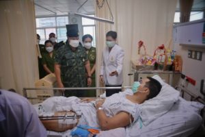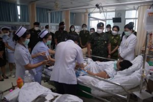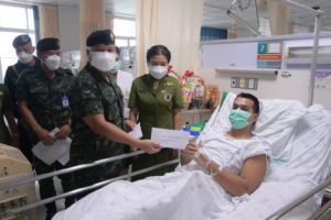 วันที่ 6 มกราคม 2565 เวลา 09.00 น. ณ ตึกอุบัติเหตุ ชั้น 5 โรงพยาบาลสงขลานครินทร์ ตำบลคอหงส์ อำเภอหาดใหญ่ จังหวัดสงขลา พลโท เกรียงไกร ศรีรักษ์ แม่ทัพภาคที่ 4/ ผู้อำนวยการรักษาความมั่นคงภายในภาค 4 พร้อมด้วย คุณคนึงนิตย์ ศรีรักษ์ ประธานสมาคมแม่บ้านทหารบก สาขากองทัพภาคที่ 4 เดินทางเยี่ยมอาการบาดเจ็บ และให้กำลังใจ อาสาสมัครทหารพราน นันทวัฒน์ ทองใหญ่ กำลังพลสังกัดกองร้อยทหารพรานที่ 4513 หน่วยเฉพาะกิจกรมทหารพรานที่ 45 ซึ่งได้รับบาดเจ็บจากเหตุการณ์คนร้ายใช้อาวุธปืนไม่ทราบชนิดและขนาด ลอบยิงฐานปฏิบัติการกองร้อยทหารพรานที่ 4513 หน่วยเฉพาะกิจกรมทหารพรานที่ 45 บ้านลาแป หมู่ที่ 2 ตำบลบองอ อำเภอระแงะ จังหวัดนราธิวาส เมื่อวันที่ 3 มกราคม 2565 ที่ผ่านมา เป็นเหตุให้เจ้าหน้าที่เสียชีวิต 1 นาย และได้รับบาดเจ็บ 2 นาย พร้อมกันนี้ได้มอบกระเช้าเยี่ยมผู้ป่วย เงินช่วยเหลือและบำรุงขวัญให้แก่กำลังพล เพื่อเป็นขวัญและกำลังใจในการปฏิบัติงานรักษาความมั่นคงปลอดภัยในพื้นที่