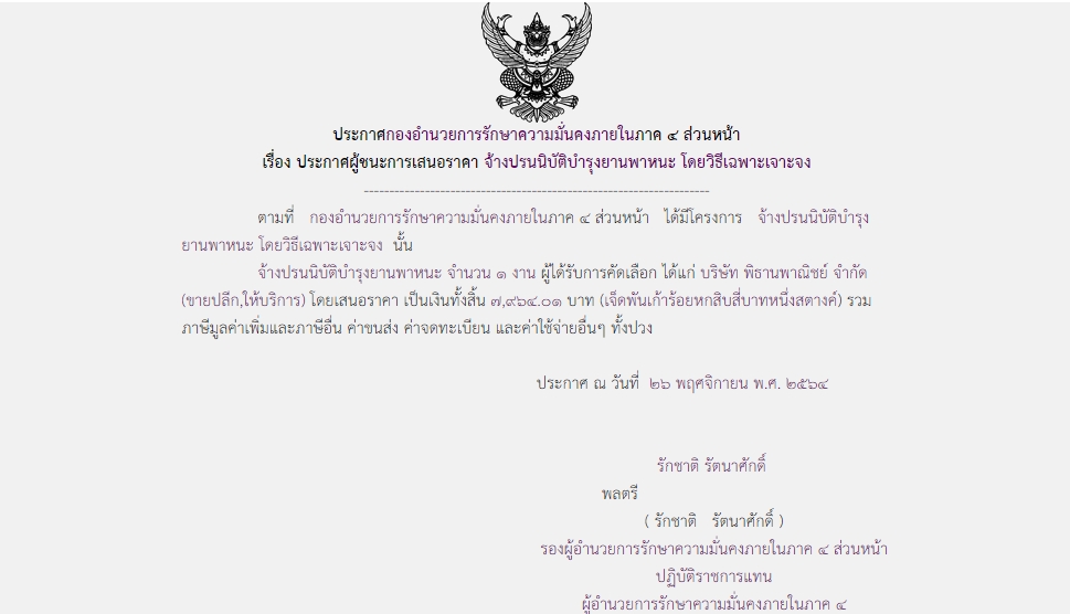 จัดซื้อ จัดจ้างประกาศผู้ชนะการเสนอราคา ประกาศผู้ชนะการเสนอราคา จ้างปรนนิบัติบำรุงยานพาหนะ โดยวิธีเฉพาะเจาะจง January 9, 2022 539 Share Facebook Twitter Google+ Telegram LINE
