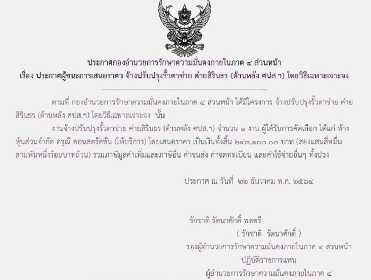 จัดซื้อ จัดจ้างประกาศผู้ชนะการเสนอราคา ประกาศผู้ชนะการเสนอราคา จ้างปรับปรุงรั้วตาข่าย ค่ายสิริธร (ด้านหลัง ศปส.ฯ) โดยวิธีเฉพาะเจาะจง (243,100 บาท) January 11, 2022 498 Share Facebook Twitter Google+ Telegram LINE