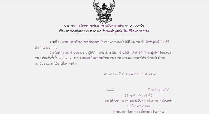 ประกาศผู้ชนะการเสนอราคา จ้างจัดทำรูปเล่ม โดยวิธีเฉพาะเจาะจง (8,400 บาท)