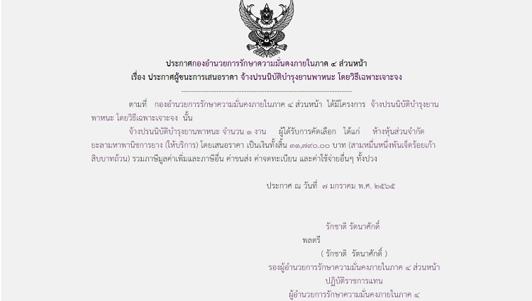 ประกาศผู้ชนะการเสนอราคา จ้างปรนนิบัติบำรุงยานพาหนะ โดยวิธีเฉพาะเจาะจง (31,790 บาท)