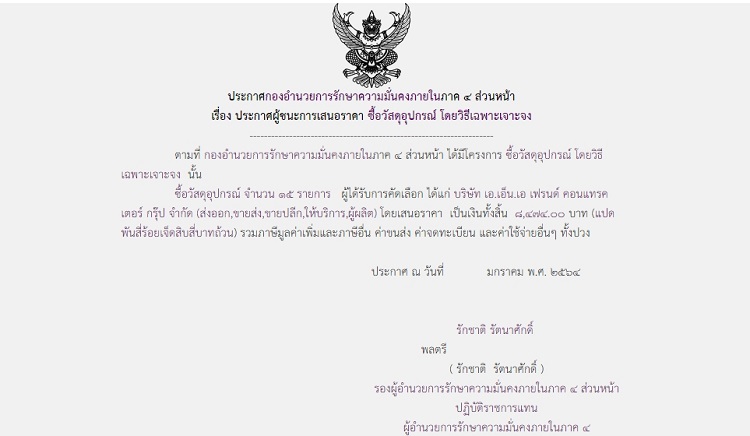 ประกาศผู้ชนะการเสนอราคา ซื้อวัสดุอุปกรณ์ โดยวิธีเฉพาะเจาะจง (8,474 บาท)