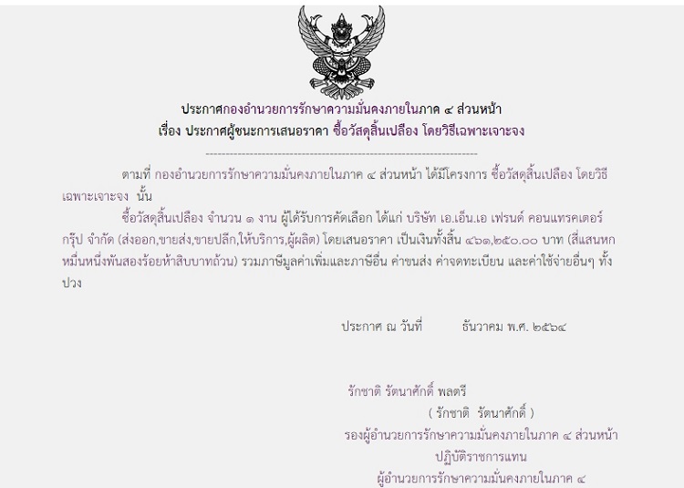 จัดซื้อ จัดจ้างประกาศผู้ชนะการเสนอราคา ประกาศผู้ชนะการเสนอราคา ซื้อวัสดุสิ้นเปลือง โดยวิธีเฉพาะเจาะจง (461,250 บาท) January 12, 2022 622 Share Facebook Twitter Google+ Telegram LINE