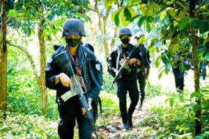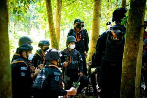 พันเอก ภาคิน เกื้อกูล ผู้บังคับหน่วยเฉพาะกิจกรมทหารพรานที่ 48 ลงพื้นที่พบปะ และตรวจเยี่ยมการปฏิบัติงานของชุดปฏิบัติการพิทักษ์พื้นที่ ในแต่ละจุด พร้อมทั้งรับฟังแผนการปฏิบัติต่อเส้นทาง และพื้นที่เป้าหมาย โดยได้มอบแนวทางการปฏิบัติงานที่สำคัญ พร้อมเน้นย้ำการควบคุมพื้นที่รับผิดชอบ รวมทั้งให้กำลังพลมีความตื่นตัวอยู่ตลอดเวลา ไม่ประมาทต่อสถานการณ์ในพื้นที่เป็นอันขาด ตลอดจนไม่สร้างเงื่อนไขต่างๆ มีความพร้อมทุกสถานการณ์ ควบคุมพื้นที่ ค้นหาแหล่งพักพิง และจำกัดเสรีการก่อเหตุให้ได้ พร้อมกันนี้ ยังได้เน้นย้ำให้กำลังพลดูแลสุขภาพร่างกายให้มีความแข็งแรงอยู่เสมอ เนื่องจากเป็นช่วงที่มีฝนตก และอากาศชื้น แต่การปฏิบัติหน้าที่ยังคงต้องดำเนินต่อไป เพื่อความมั่นคงปลอดภัยแก่พี่น้องประชาชน ตลอดจนระหว่างการปฏิบัติภารกิจต้องอยู่ภายใต้มาตรการป้องกันการแพร่ระบาดของเชื้อไวรัส COVID-19 อย่างเคร่งครัด พร้อมทั้งได้มอบสิ่งของเครื่องอุปโภคบริโภคให้กับกำลังพล เพื่อเป็นขวัญกำลังใจในการปฏิบัติหน้าที่