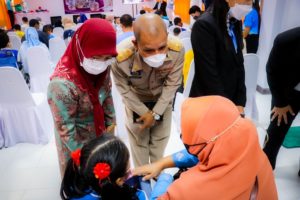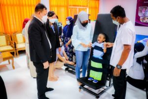 เมื่อวันที่ 18 มกราคม 2565 ณ ศูนย์การศึกษาพิเศษ จังหวัดนราธิวาส พลเรือตรี สมเกียรติ ผลประยูร เลขาธิการศูนย์อำนวยการบริหารจังหวัดชายแดนภาคใต้ (ศอ.บต.) เป็นประธานมอบอุปกรณ์ช่วยเหลือเด็กพิการในพื้นที่จังหวัดนราธิวาส เพื่อช่วยเหลือเด็กพิการให้มีพัฒนาการที่ดีขึ้น สามารถช่วยเหลือตนเองได้ในอนาคต ตามโครงการมอบอุปกรณ์ช่วยเหลือความพิการ ‘เก้าอี้สุขใจ’ เพื่อให้เด็กพิการสามารถฝึกทรงตัว นั่ง และประคองศีรษะ มอบ ‘เตียงฝึกยืน’ ให้สามารถฝึกกล้ามเนื้อส่วนขาให้แข็งแรง เพื่อนำไปสู่การก้าวเดิน และมอบ ‘รองเท้าสั่งตัด’ เพื่อปรับรูปเท้าของเด็กแต่ละคนให้มีความสมบูรณ์ สามารถใช้การได้