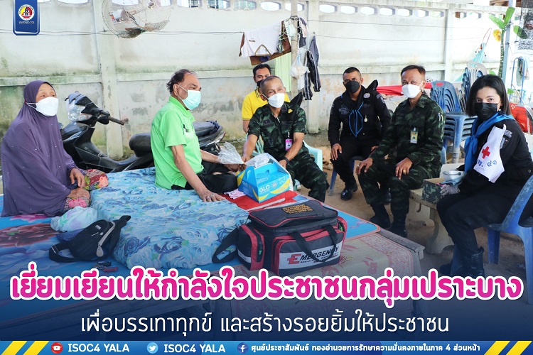 สำหรับการลงพื้นที่นาครั้งนี้ หน่วยเฉพาะกิจยะลา มีความห่วงใยในสภาพความเป็นอยู่ สุขภาพของผู้ป่วย ผู้พิการ และครอบครัวที่มีฐานะยากจน จึงได้ลงพื้นที่เชิงรุก พร้อมการประสานงานหน่วยงานที่เกี่ยวข้องดำเนินการเข้าช่วยเหลือ สำรวจความเป็นอยู่ของพี่น้องประชาชน ด้วยความเอาใจใส่ ในทุกๆ ด้าน มุ่งช่วยบรรเทาความเดือดร้อนของพี่น้องประชาชน เพื่อความเป็นอยู่ที่ดีขึ้น และเป็นการสร้างขวัญและกำลังใจให้กับผู้พิการทางการเคลื่อนไหว และครอบครัวด้วย