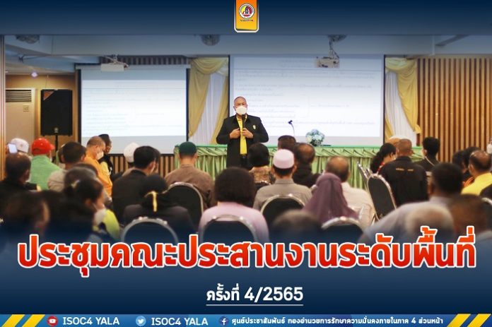 สำหรับการประชุมคณะประสานงานระดับพื้นที่ ครั้งที่ 4/2565 จัดขึ้นระหว่างวันที่ 26 -27 มกราคม 2565 ในที่ประชุมได้พูดคุย และชี้แจงถึงความคืบหน้าการขับเคลื่อนงานการพูดคุยสันติสุขในห้วงที่ผ่านมา หารือ รับฟังความคิดเห็นต่อการขับเคลื่อนงานของคณะประสานงานระดับพื้นที่ รวมทั้งแบ่งกลุ่มสัมมนาเพื่อเสนอแนวความคิดเห็นในหัวข้อ แนวทางการปฏิบัติการขับเคลื่อนงานสร้างสภาวะแวดล้อมที่เอื้อต่อการพูดคุยเพื่อสันติสุขจังหวัดชายแดนภาคใต้
