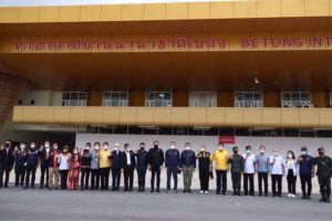 วันนี้ 5 กุมภาพันธ์ 2565 นายอนุทิน ชาญวีรกูล รองนายกรัฐมนตรี และรัฐมนตรีว่าการกระทรวงสาธารณสุข พร้อมด้วยนายศักดิ์สยาม ชิดชอบ รัฐมนตรีว่าการกระทรวงคมนาคม นายชยธรรม์ พรหมศร ปลัดกระทรวงคมนาคม นายปริญญา แสงสุวรรณ อธิบดีกรมท่าอากาศยาน พร้อมคณะ ลงพื้นที่ติดตามการเตรียมความพร้อมในการเปิดให้บริการท่าอากาศยานเบตง พร้อมทั้งตรวจความพร้อมของท่าอากาศยานเบตง อาคารที่พักผู้โดยสาร สิ่งอำนวยความสะดวกต่างๆภายในท่าอากาศยานเบตง และตรวจราชการโรงพยาบาลเบตง อำเภอเบตง จังหวัดยะลา โดยมี พลโทเกรียงไกร ศรีรักษ์ แม่ทัพภาคที่ 4/ผู้อำนวยการรักษาความมั่นคงภายในภาค 4 และหน่วยงานที่เกี่ยวข้อง ประกอบด้วย กระทรวงคมนาคม ศูนย์อำนวยการบริหารจังหวัดชายแดนภาคใต้ กรมท่าอากาศยาน สำนักงานการบินพลเรือนแห่งประเทศไทย บริษัท วิทยุการบินแห่งประเทศไทย จังหวัดยะลา การท่องเที่ยวแห่งประเทศไทย หอการค้าจังหวัดยะลา สภาอุตสาหกรรมจังหวัดยะลา สมาคมธุรกิจท่องเที่ยวเบตง สายการบินและผู้แทนหน่วยงานในพื้นที่เข้าให้การต้อนรับ และร่วมประชุม