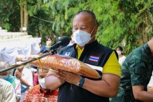 วันนี้ 6 กุมภาพันธ์ 2565 เวลา 12.00 น. ณ ที่พักสงฆ์อินทโมลีบรรพต (เจดีย์หลวงพ่อทวดหนอน) ตำบลบ้านกลาง อำเภอปะนาเระ จังหวัดปัตตานี พลโท เกรียงไกร ศรีรักษ์ แม่ทัพภาคที่ 4 / ผู้อำนวยการรักษาความมั่นคงภายในภาค 4 เป็นประธานฝ่ายฆราวาสในพิธีทอดผ้าป่าสามัคคี สมทบทุนบูรณปฏิสังขรณ์ ศาลาหลวงปู่ทวดหนอนและเจดีย์ ทั้งอนุรักษ์สืบสานประเพณีวัฒนธรรมอันดีงาม ทำนุบำรุง สืบสานวัฒนธรรมขนบธรรมเนียมประเพณีในพระพุทธศาสนาให้คงอยู่ ตลอดจนส่งเสริมความรักความสามัคคีของประชาชนในพื้นที่ โดยมี พระครูพินิจสมณการ เจ้าคณะจังหวัดปัตตานี เป็นประธานฝ่ายสงฆ์ พร้อมด้วย พระครูสิริพรหมสุนทร รองเจ้าคณะจังหวัดปัตตานี โดยมี พลเอก มณี จันทร์ทิพย์ ที่ปรึกษากองอำนวยการรักษาความมั่นคงภายในภาค 4 ส่วนหน้า , พลโท ธิรา แดหวา แม่ทัพน้อยที่ 4 / รองผู้อำนวยการรักษาความมั่นคงภายในภาค 4 ส่วนหน้า , คณะผู้บังคับบัญชาจากกองอำนวยการรักษาความมั่นคงภายในภาค 4 ส่วนหน้า , ผู้ว่าราชการจังหวัดปัตตานี , เจ้าหน้าที่ทหาร , ตำรวจ , หัวหน้าส่วนราชการ ตลอดจนพุทธศาสนิกชนในพื้นที่เข้าร่วมพิธี ภายใต้มาตรการป้องกันการแพร่ระบาดของเชื้อไวรัส covid-19 อย่างเคร่งครัด