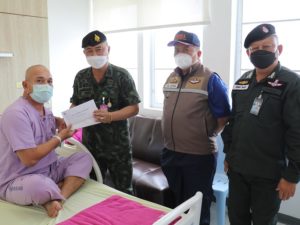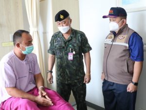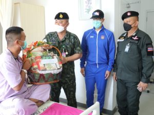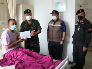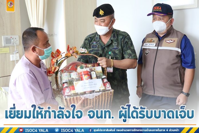 ทั้งนี้ พลตรี วัฒนา กรมขันธ์ เลขาธิการ กองอำนวยการรักษาความมั่นคงภายในภาค 4 ส่วนหน้า ยังได้พูดคุย สอบถามอาการ ตลอดจนกล่าวให้กำลังใจ ขอให้มีขวัญ และกำลังใจที่ดีขึ้น พร้อมกันนี้ได้มอบกระเช้าเยี่ยมกำลังพลที่ได้รับบาดเจ็บ เเละเงินบำรุงขวัญในนาม พลเอก ณรงค์พันธ์ จิตต์แก้วแท้ ผู้บัญชาการทหารบก /รองผู้อำนวยการรักษาความมั่นคงภายในราชอาณาจักร และในนาม พลโท เกรียงไกร ศรีรักษ์ แม่ทัพภาคที่ 4/ ผู้อำนวยการรักษาความมั่นคงภายในภาค 4 ณ โรงพยาบาลตำรวจ