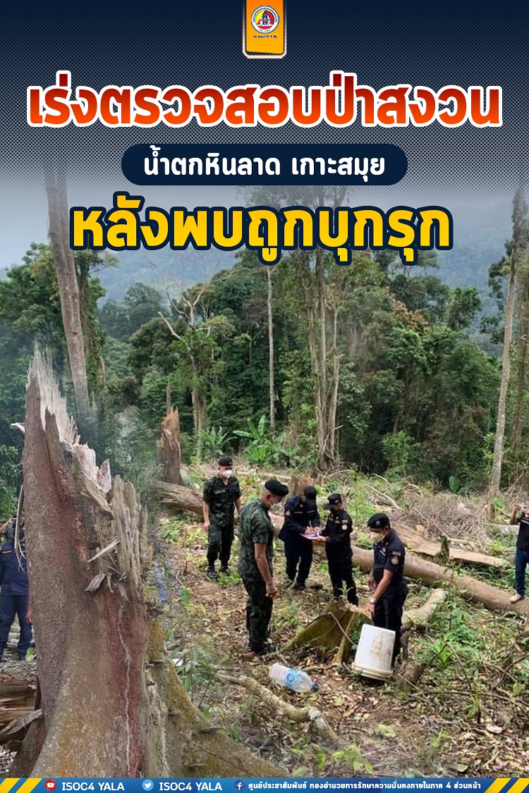 ทั้งนี้ รองแม่ทัพภาคที่ 4 ได้สั่งการให้ส่วนที่เกี่ยวข้องเร่งดำเนินการกับผู้ที่ลักลอบบุกรุกทำลายป่าโดยด่วน เนื่องจากป่าสงวนแห่งชาติป่าน้ำตกหินลาด หมู่ที่ 4 ตำบลลิปะน้อย อำเภอเกาะสมุย จังหวัดสุราษฎร์ธานี ถือเป็นพื้นที่ที่ถูกบุกรุกใหม่ในพื้นที่เกาะสมุย จึงต้องเร่งแก้ไขและทำความเข้าใจกับประชาชนในพื้นที่ให้ช่วยกันดูแลรักษา เพื่อไม่ให้ป่าโดนบุกรุกทำลาย