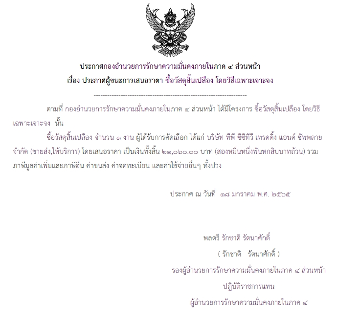 ประกาศผู้ชนะการเสนอราคา ซื้อวัสดุสิ้นเปลือง โดยวิธีเฉพาะเจาะจง (๒๑,๐๖๐.๐๐บาท)
