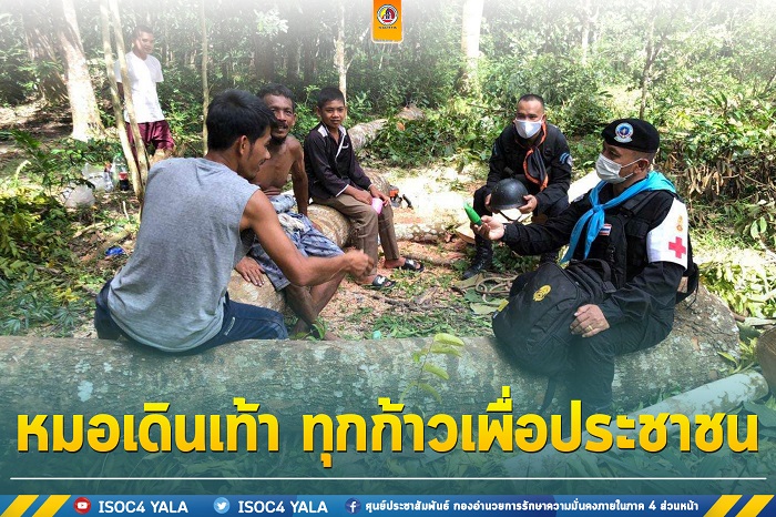 กองร้อยทหารพรานที่ 4601 หน่วยเฉพาะกิจกรมทหารพรานที่ 46 จัด “ชุดหมอเดินเท้า” ลงพื้นที่พบปะ ประชาชนถึงบ้าน ณ บริเวณบ้านละหาน (หมู่บ้านสันติสุข) หมู่ที่ 5 ตำบลสามัคคี อำเภอรือเสาะ จังหวัดนราธิวาส พร้อมทั้งแจกจ่ายยาเวชภัณฑ์ และแนะนำวิธีการดูแลสุขภาพ, ในช่วงการแพร่ระบาดของโรคโควิด-19 ให้กับประชาชน เพื่อเป็นการบรรเทาความเดือดร้อน ลดค่าใช่จ่ายและภาระในการเดินทางไปพบแพทย์ รวมทั้งยังได้ให้กำลังใจและให้คำมั่นว่า ทุกภาคส่วนจะไม่ทอดทิ้งประชาชนพร้อมช่วยเหลือเยียวยา สร้างความอบอุ่นใจให้แก่ประชาชนที่อยู่ในพื้นที่ และจะออกให้บริการประชาชนอย่างต่อเนื่อง