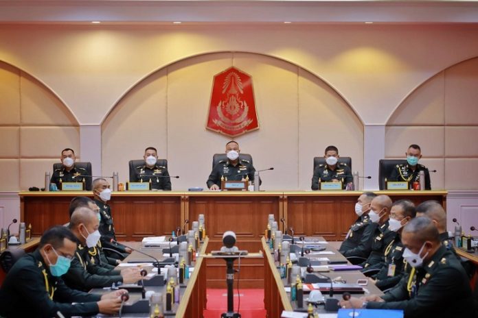 ทั้งนี้ พลเอก ณรงค์พันธ์ จิตต์แก้วแท้ ผู้บัญชาการทหารบก ได้ขอบคุณการปฏิบัติงานของหน่วยในการจัดงานวันสำคัญของกองทัพในเดือนที่ผ่านมา ซึ่งได้ทำการประชาสัมพันธ์การจัดงานได้อย่างสมเกียรติ ที่ผ่านมาผู้บัญชาการทหารบกได้ไปเยือนประเทศกัมพูชา และได้มีการประสานงานเรื่องการปฏิบัติของทั้งสองฝ่ายสร้างความสัมพันธ์อันดีและมีความร่วมมือกันทางทหารในโอกาสต่อไป ในด้านงานป้องกันชายแดน นายกรัฐมนตรี/รัฐมนตรีว่าการกระทรวงกลาโหม ได้รับทราบผลงานของหน่วยที่ปฏิบัติอย่างเข้มแข็ง เสียสละ กำชับให้นำเครื่องมือพิเศษที่มีมาช่วยปฏิบัติงาน ในส่วนการรับสมัครทหารแบบออนไลน์เดินหน้าไปในทิศทางที่ดีให้นำผลงานของปีนี้ไปปรับปรุงให้ดียิ่งขึ้นในปีถัดไป การคัดเลือกผู้สมัครเข้ามาทำงานในกองทัพ เน้นย้ำต่อมาตรฐาน และความชอบสร้างความเชื่อมั่นให้กับพี่น้องประชาชน ในส่วนสถานการณ์การแพร่ระบาดของเชื้อไวรัส covid-19 ขณะนี้เริ่มมีการระบาดหนักให้หน่วยได้ปฏิบัติตามประกาศของ ศบค. อย่างเคร่งครัด โรงพยาบาลทหารจัดเตรียมความพร้อมหากมีการขยายเพื่อเปิดโรงพยาบาลสนามเพิ่มเติม นอกจากนี้ยังกำชับให้ผู้บังคับหน่วยได้กำกับดูแลกำลังพลที่ให้ประพฤติปฏิบัติสิ่งที่ไม่เหมาะสม เน้นย้ำเรื่องวินัยการจราจร การใช้ยานพาหนะของหน่วยอย่างเข้มงวด เน้นย้ำให้หน่วยได้ดูแลเรื่องสวัสดิการ ความเป็นอยู่ของกำลังพลให้ดี เพื่อให้กำลังพลได้มีกำลังใจปฏิบัติงาน เพื่อประชาชนและประเทศชาติต่อไป และต้องขอชื่นชมกำลังพลที่ทำความดี ซึ่งแสดงออกถึงความเป็นข้าราชการที่ดี เป็นประชาชนที่ดีที่มีจิตใจงดงาม ช่วยเหลือสังคม และเป็นแบบอย่างให้ผู้อื่นได้ประพฤติปฏิบัติตามในสิ่งที่ดีต่อไป ซึ่งถือเป็นความภาคภูมิใจของหน่วย และกองทัพบก อันแสดงให้เห็นถึงกำลังพลของกองทัพบกสามารถเป็นที่พึ่งให้กับประชาชนได้ทุกโอกาส