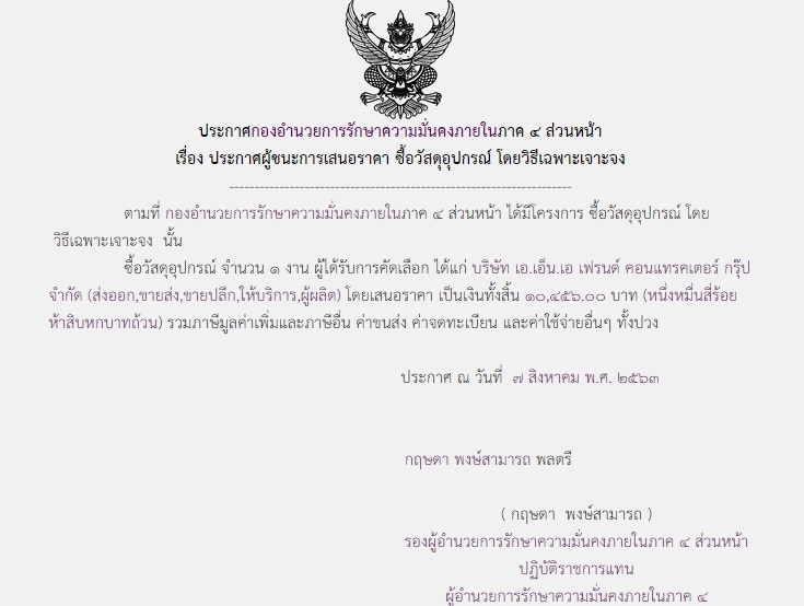ประกาศผู้ชนะการเสนอราคา ซื้อวัสดุอุปกรณ์ โดยวิธีเฉพาะเจาะจง(๗)