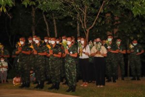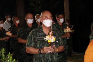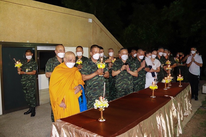 เมื่อ (16 ก.พ. 65) เวลา 18.00 น. ที่เขาพระศรีศากยมุนีพุทธโคดม ค่ายสิรินธร ตำบลเขาตูม อำเภอยะรัง จังหวัดปัตตานี พลตรี ปราโมทย์ พรหมอินทร์ รองผู้อำนวยการรักษาความมั่นคงภายในภาค 4 ส่วนหน้า ประธานในพิธีพร้อมด้วย พลตรีวัฒนา กรมขันธ์ เลขาธิการกองอำนวยการรักษาความมั่นคงภายในภาค 4 ส่วนหน้า นำกำลังพลและพุทธศาสนิกชนในพื้นที่เข้าร่วมพิธีเวียนเทียน เนื่องในวัน “มาฆบูชา” ประจำปี 2565 เพื่อเป็นการอนุรักษ์สืบสานประเพณีทางพุทธศาสนาให้คงอยู่สืบไป ภายใต้มาตรการการป้องกันการแพร่ระบาดจากเชื้อโควิด-19 อย่างเคร่งครัด