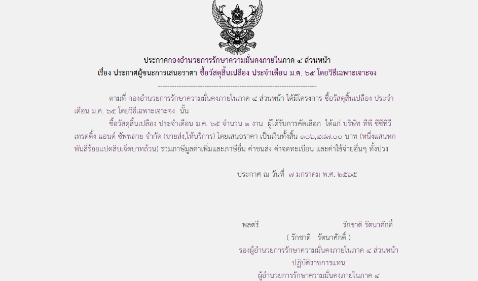 จัดซื้อ จัดจ้างประกาศผู้ชนะการเสนอราคา ประกาศผู้ชนะการเสนอราคา ซื้อวัสดุสื้นเปลือง ประจำเดือน ม.ค.๖๕ โดยวิธีเฉพาะเจาะจง (๑๐๖,๔๘๗.๐๐บาท) February 18, 2022 467 Share Facebook Twitter Google+ Telegram LINE