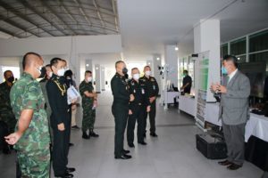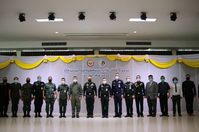 วันนี้ 23 กุมภาพันธ์ 2565 เวลา 09.00 น. ที่ห้องประชุมปฐมภาคย์ มณฑลทหารบกที่ 42 ค่ายเสนาณรงค์ อำเภอหาดใหญ่ จังหวัดสงขลา พลโท สมเกียรติ สัมพันธ์ เจ้ากรมวิทยาศาสตร์ และเทคโนโลยีกลาโหม เป็นประธานพิธีส่งมอบยุทโธปกรณ์พิเศษผลงานวิจัย ให้แก่กองอำนวยการรักษาความมั่นคงภายในภาค 4 ส่วนหน้า เพื่อสนับสนุนการปฎิบัติหน้าที่ในพื้นที่จังหวัดชายแดนภาคใต้ ดูแลความปลอดภัยทั้งชีวิตและทรัพย์สินแก่พี่น้องประชาชนตลอดจนกำลังพล ตามนโยบายของ พลเอก ประยุทธ์ จันทร์โอชา นายกรัฐมนตรี / รัฐมนตรีว่าการกระทรวงกลาโหม ก่อนร่วมรับชมการสาธิตผลงานวิจัย โดยมี พลตรี ประเสริฐ กิตติรัต ผู้บัญชาการมณฑลทหารบกที่ 42 / ผู้อำนวยการศูนย์ป้องกันและแก้ไขปัญหายาเสพติด กองอำนวยการรักษาความมั่นคงภายในภาค 4 ส่วนหน้า, คณะผู้บังคับบัญชา กรมวิทยาศาสตร์และเทคโนโลยีกลาโหม, คณะผู้บังคับบัญชาจากกองอำนวยการรักษาความมั่นคงภายในภาค 4 ส่วนหน้า, ตลอดจนหน่วยเฉพาะกิจในพื้นที่เข้าร่วมรับมอบ พร้อมพบปะพูดคุยหารือถึงยุทโธปกรณ์พิเศษผลงานวิจัยที่ได้รับ ภายใต้มาตรการป้องกันการแพร่ระบาดของเชื้อไวรัสโควิด-19 อย่างเคร่งครัด