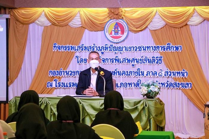 วันนี้ 23 กุมภาพันธ์ 2565 เวลา 14.30 น. ณ โรงแรมเฟรนด์ลีเทล ต.หาดใหญ่ อ.หาดใหญ่ จ.สงขลา พันเอกสถิตย์ บุญเมือง ผู้อำนวยการกองกิจการพิเศษ ศูนย์สันติวิธี ผู้แทนกองอำนวยการรักษาความมั่นคงภายในภาค 4 ส่วนหน้า เป็นประธานในพิธี โดยมีพันเอกอุดม พุฒนุ้ย รองผู้อำนวยการกองกิจการพิเศษ ศูนย์สันติวิธี อาจารย์ธีรวีร์ คณานุรักษ์ ส่วนเสริมสร้างความเข้าใจ หน่วยเฉพาะกิจยะลา, นราธิวาส, ปัตตานี, สงขลา คณะวิทยากร คณะครูอาจารย์ และนักเรียนร่วมให้การต้อนรับ