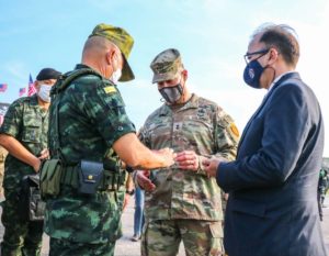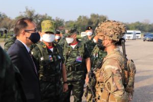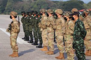 วันนี้ 24 กุมภาพันธ์ 2565 เวลา 9.00 น พลเอก ณรงค์พันธ์ จิตต์แก้วแท้ ผู้บัญชาการทหารบก ประธานฝ่ายกองทัพบกไทย พร้อมด้วย ผู้แทนจากกองทัพบกสหรัฐฯ MG Joseph A. Ryan ผู้บัญชาการกองพล ทหารราบที่ 25 สหรัฐฯ ประธานฝ่ายกองทัพบกสหรัฐฯ เปิดการฝึกร่วมผสม ระหว่างกองทัพบกไทย-สหรัฐฯ ภายใต้รหัสการฝึก “หนุมานการ์เดียน 2022” ณ ลานสนามบิน ศูนย์การทหารราบ ค่ายธนะรัชต์ อำเภอปราณบุรีจังหวัดประจวบคีรีขันธ์ โดยมี พลโท เกรียงไกร ศรีรักษ์ แม่ทัพภาคที่ 4, พลตรี วรเดช เดชรักษา ผู้บัญชาการกองพลทหารราบที่ 5 ผู้แทนจากกองทัพบก และ ผู้บังคับบัญชาหน่วยทหารในพื้นที่ เข้าร่วมในพิธี