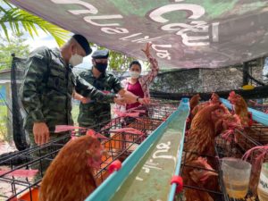 เมื่อวันที่ 24 กุมภาพันธ์ 2565 พลตรี เฉลิมพร ขำเขียว ผู้บัญชาการกองพลทหารราบที่ 15 / ผู้อำนวยการศูนย์ประสานงานโครงการอันเนื่องมาจากพระราชดำริ และคณะ ลงพื้นที่เพื่อติดตามความคืบหน้าการเลี้ยงไก่ไข่ ตามโครงการส่งเสริมคุณภาพชีวิต เพื่อการพัฒนาที่ยั่งยืน ประจำปี พ.ศ. 2565 ในพื้นที่ชุมชนบ้านโคกโก หมู่ที่ 5 ตำบลกะลุวอ อำเภอเมือง จังหวัดนราธิวาส ซึ่งศูนย์ประสานงานโครงการอันเนื่องมาจากพระราชดำริ ได้ให้การสนับสนุนจัดหาพันธุ์ไก่ไข่ พันธุ์ไก่พื้นเมือง อาหารไก่ และ อุปกรณ์การเลี้ยงไก่ ตามความต้องการของชุมชนที่ได้ทำการสำรวจ ในระยะเริ่มต้นของการดำเนินการ ซึ่งกิจกรรมดังกล่าว เป็นกิจกรรมช่วยเหลือพี่น้องประชาชนที่ได้รับผลกระทบจากสถานการณ์การแพร่ระบาดของเชื่อไวรัสโควิด-19 และสถานการณ์ความไม่สงบในพื้นที่จังหวัดชายแดนภาคใต้ เพื่อเป็นการบรรเทาความเดือดร้อนของพี่น้องประชาชน ลดต้นทุนในการประกอบอาชีพสามารถสร้างงาน ลดรายจ่าย เพิ่มรายได้ ให้สามารถเลี้ยงดูตนเองและครอบครัวได้ต่อไป