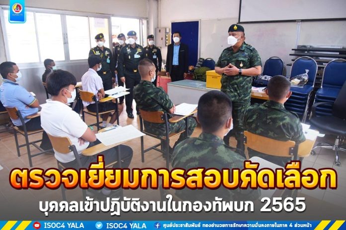 ทั้งนี้ตามที่กองทัพภาคที่ 4 ได้รับมอบหมายให้รับผิดชอบการสอบคัดเลือกบุคคลเข้าปฏิบัติงานในกองทัพบกประจำปีงบประมาณ 2565 (การสอบภาควิชาการ) ซึ่งมีสนามสอบ จำนวน 6 สนาม ได้แก่สนามสอบ 41 โรงเรียนโยธินบำรุง อำเภอเมือง จังหวัดนครศรีธรรมราช, สนามสอบ 42 วิทยาลัยเทคนิคหาดใหญ่ อำเภอหาดใหญ่ จังหวัดสงขลา, สนามสอบ 43 มหาวิทยาลัยเทคโนโลยีราชมงคลศรีวิชัย อำเภอทุ่งสง จังหวัดนครศรีธรรมราช, สนามสอบ 44 วิทยาลัยอาชีวศึกษาชุมพร อำเภอเมือง จังหวัดชุมพร, สนามสอบ 45 มหาวิทยาลัยสุราษฎร์ธานี อำเภอเมือง จังหวัดสุราษฎร์ธานี และสนามสอบ 46 โรงเรียนราชประชานุเคราะห์ 40 อำเภอเมือง จังหวัดปัตตานี