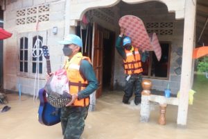 ทั้งนี้เนื่องจากช่วงระยะ 3 – 4 วันที่ผ่านมา เกิดฝนตกหนักติดต่อกัน ส่งผลให้ระดับน้ำสระสมเพิ่มขึ้น บวกกับน้ำที่เอ่อล้นตลิ่งจากแม่น้ำไหลบ่าเข้าตามลำคลองสาขาจนไหลเข้าท่วมบ้านเรือนได้รับความเสียหาย ทางกองพันทหารม้าที่ 31 กองพลทหารราบที่ 15 จึงส่งเจ้าหน้าที่ทหารเข้าช่วยเหลือเพื่อเป็นการบรรเทาความเดือดร้อนในเบื้องต้น