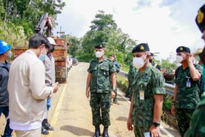 เมื่อวันที่ 28 กุมภาพันธ์ 2565 เวลา 13.00 น. พลตรี อุทิศ อนันตนานนท์ รองแม่ทัพภาคที่ 4/รองผู้อำนวยการรักษาความมั่นคงภายในภาค 4 ส่วนหน้า พร้อมด้วยรองผู้บังคับหน่วยเฉพาะกิจยะลา ฝ่ายเสธฯ ลงพื้นที่ หมู่ที่ 6 บ้านตลาดนิคม ตำบลตลิ่งชัน อำเภอบันนังสตา จังหวัดยะลา เพื่อสำรวจพื้นที่เสียหายจากภัยธรรมชาติดินโคลนถล่ม ทับถมเส้นทางสัญจรของประชาชนในพื้นที่ เนื่องจากฝนตกอย่างหนักสะสมมาตั้งแต่เมื่อวันที่ 24 กุมภาพันธ์ 2565 ที่ผ่านมา ทำให้เกิดเหตุดินสไลด์ต้นไม้หักโค่น ถล่มปิดทับเส้นทาง บริเวณทางขึ้นเขาปกโย๊ะ นิคมสร้างตนเองพัฒนาภาคใต้ จังหวัดยะลา พร้อมกันนี้ได้มอบเครื่องอุปโภคบริโภค เป็นขวัญกำลังใจในการทำงานช่วยเหลือพี่น้องประชาชน โดยมี ผู้บังคับหน่วยเฉพาะกิจกรมทหารพรานที่ 30, ผู้บังคับกองพันทหารราบที่ 1 กรมทหารราบที่ 152, ผู้บังคับกองพันทหารช่างที่ 15 กองพลทหารราบที่ 15, ผู้ปกครองนิคมสร้างตนเองพัฒนาภาคใต้ จังหวัดยะลา ปลัดอำเภอบันนังสตา ผู้นำในพื้นที่ให้การต้อนรับ
