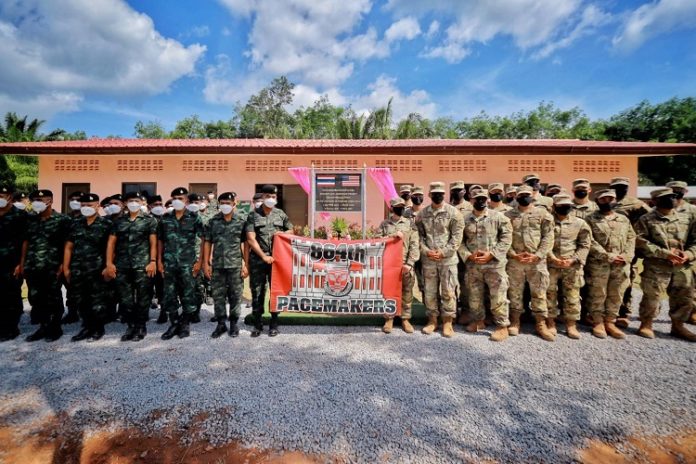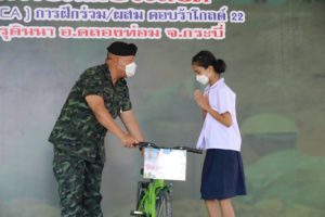 วันนี้ 3 มีนาคม 2565 เวลา 14.00 น. ที่ โรงเรียนบ้านทุ่งนุ้ย ตำบลพรุดินนา อำเภอคลองท่อม จังหวัดกระบี่ พลโท เกรียงไกร ศรีรักษ์ แม่ทัพภาคที่ 4 พร้อมด้วยผู้แทนกองทัพสหรัฐอเมริกา ร่วมเป็นประธานในพิธีส่งมอบอาคาร โครงการช่วยเหลือประชาชน (HCA) ด้านการก่อสร้าง (ENCAP) ในพื้นที่การฝึกร่วม/ผสมคอบร้าโกลด์ 22 เพื่อสนับสนุนการพัฒนาคุณภาพชีวิตของคนในชุมชน และยกระดับผลสัมฤทธิ์ทางศึกษาของเด็กไทยในพื้นที่ พร้อมกันนี้ได้มอบจักรยาน ตามโครงการจักรยานเพื่อน้อง Army Bike สานฝันปันสุข เพื่อน้องได้มีจักรยานไปโรงเรียน ก่อนส่งมอบอาคารฯ เดินเยี่ยมชมอาคารโดยรอบ ตลอดจนเยี่ยมชมผลิตภัณฑ์ของโรงเรียนบ้านทุ่งนุ้ยตามลำดับ โดยมี นายอนุวรรตน์ โหมดพริ้ง รองผู้ว่าราชการจังหวัดกระบี่, พลตรีวรเดช เดชรักษา ผู้บัญชาการกองพลทหารราบที่ 5, นายอำเภอคลองท่อม, ผู้อำนวยการสำนักงานเขตพื้นที่การศึกษาประถมศึกษากระบี่, ผู้อำนวยการโรงเรียน, คณะครู นักเรียนโรงเรียนบ้านทุ่งนุ้ย และกำลังพลเข้าร่วมในพิธี ภายใต้มาตรการป้องกันการแพร่ระบาดของเชื้อไวรัส covid-19 อย่างเคร่งครัด
